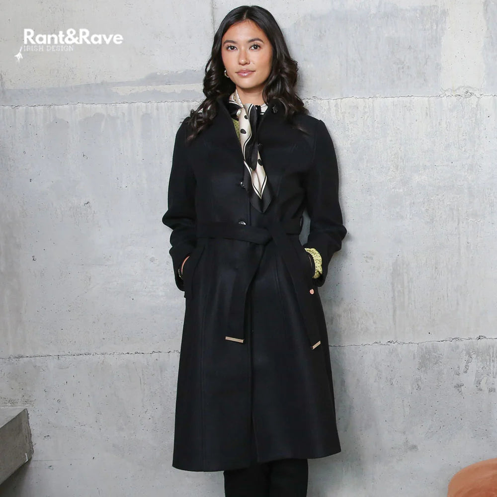 Elevate your outerwear game with the Rant & Rave Amanda Coat in sleek black. This stylish coat features a tailored silhouette that flatters every figure, making it the perfect companion for both casual outings and sophisticated events. The luxurious fabric offers warmth without sacrificing style, while the versatile design pairs effortlessly with vibrant pieces like orange pants for a bold statement. Stay chic and cozy all season long with this must-have addition to your wardrobe!